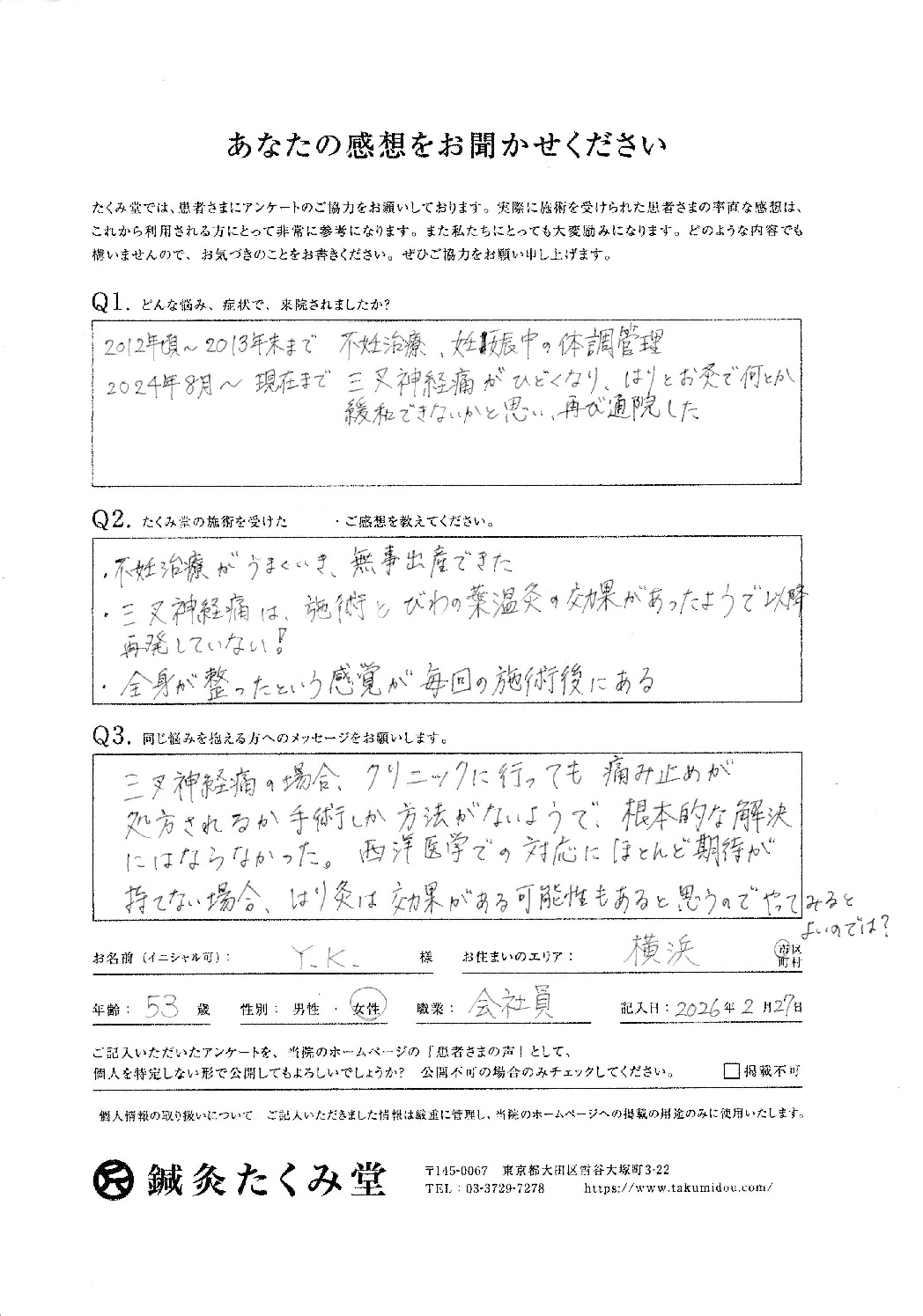 Y.Kさま(横浜市・53歳・女性・会社員、主婦業)